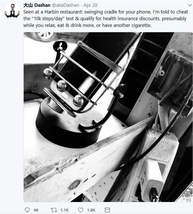 而前不久,一名国外的网友在推特上面发布了一条消息,称中国人真是神奇,竟然为了增加步数,出了一款神奇,坐着将手机放到里面,一个小时步数就会蹭蹭蹭往上涨,分分钟就上万,但是本人却其实没有动。