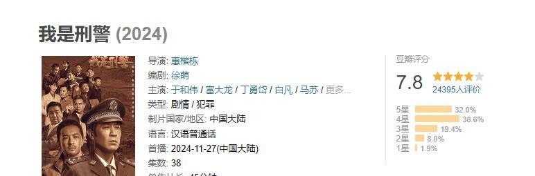 尽管目前我是刑警的豆瓣评分只有7.8分,但观众对其后续剧情充满期待。相信在老戏骨们的精彩演绎下,这部剧会有更好的表现。