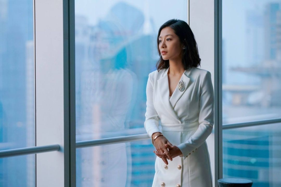 她一会儿是职场剧里那个头脑清醒、有故事的女强人。