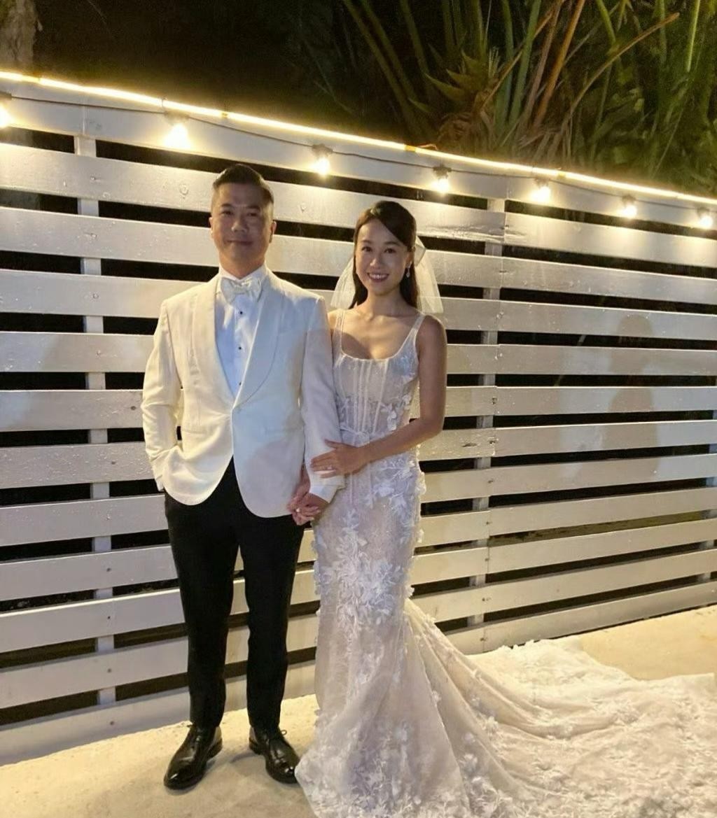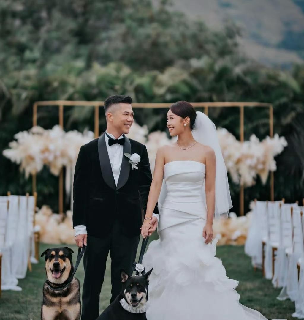10月28日,黄心颖通过社交平台宣布自己已经步入了婚姻的殿堂,附上了“Just Married”(新婚)的文字,分享了自己婚礼的喜悦。在发布的照片中,黄心颖身着一袭白色抹胸婚纱,展示了她完美的身材,而她的老公黎万宏则穿着一套黑色西装,两人看起来非常幸福。他们还和两只爱犬一起与宾客互动,场面温馨。