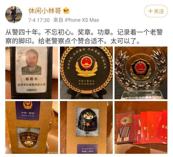 杨幂父亲表示:从警已经四十年,不忘初心,奖章、功章,记录了一个老警察的脚印,并在线求点赞。