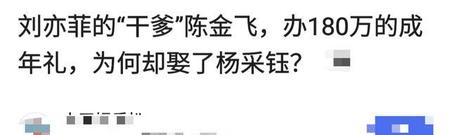可见杨采钰选择和陈金飞结婚是非常明智的选择,一山难容二虎,资源偏向杨采钰,最近刘亦菲资源就差很多,85花旦估计都快没她位子了,貌似这位新干妈和刘亦菲关系也没有太和谐,从来没有同框,可能是因为都是吃吃演员这口饭的,同行是冤家的关系吧?