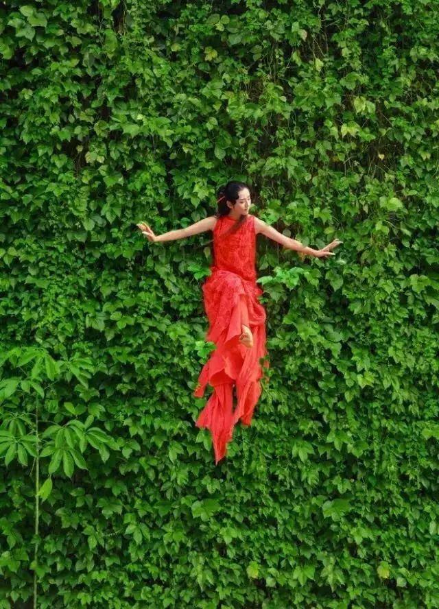 杨丽萍房子漂亮,让人陶醉,主人杨丽萍也是举世无双的美人,她犹如从绿色的藤蔓当中跳跃而出的精灵,向我们诠释出万绿丛中一点红的动人场景。杨丽萍坐在精致文秀的小花园,没有花枝招展,也没有妖娆妩媚,却美到让人窒息。笔者觉得,杨丽萍是与大自然为伍天人互泰的人。