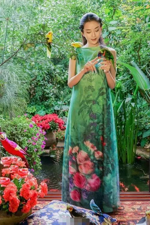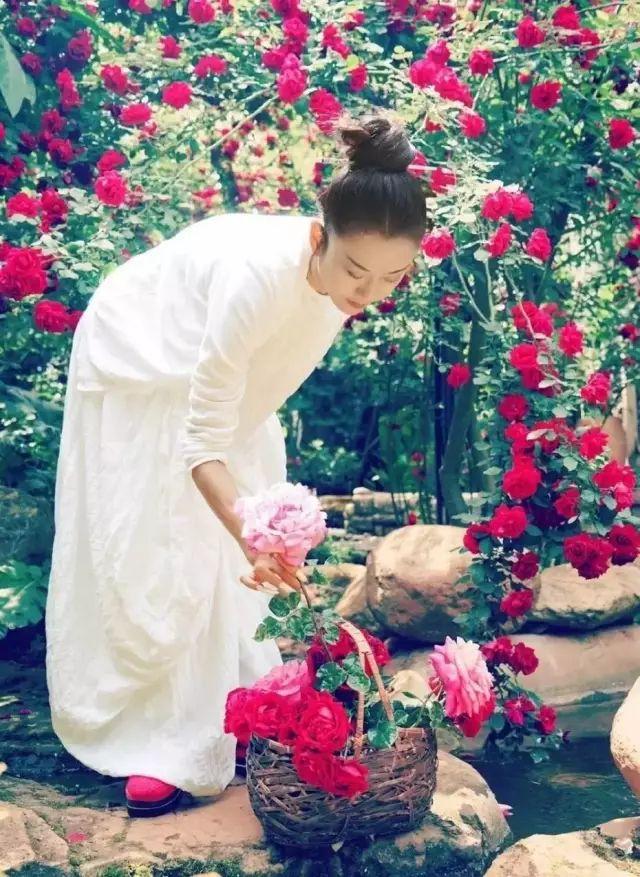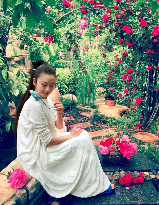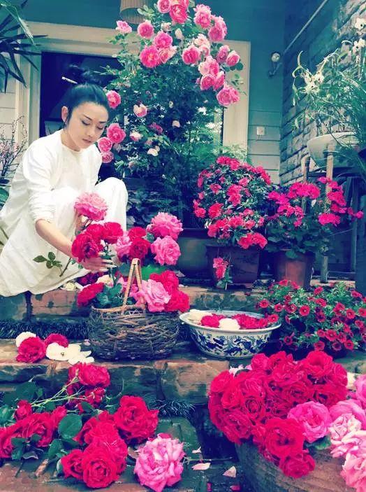 在她的豪宅院子里,也种植了种类繁多的花卉植物,各种花卉齐开放,她一袭白衣坐在花海中,仿佛来自天上的孔雀仙子。摘花泡茶,与舞为伴。