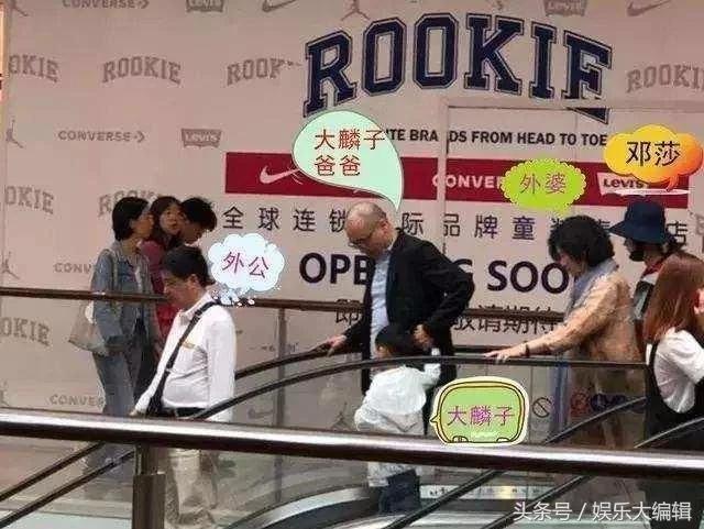 而在早前,就有网友拍到邓莎和老公路行及大麟子,大麟子外婆及外公一家逛街的照片,尤其是穿白色衬衣的大麟子外公,辨识度特别高。