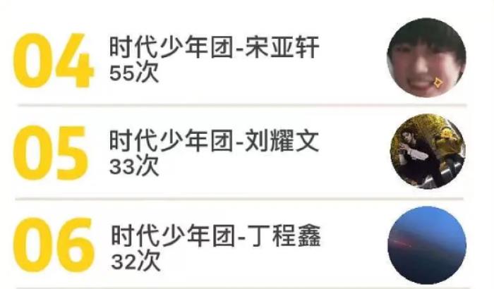 值得一提的是,虽然宋亚轩的热搜数在组合内排第一,但是他在总榜中只排在第四名。前三名都是同一个组合的成员,不过热搜数的差距也是非常明显。第三名是易烊千玺,他的单人热搜数是60次。第二名是王源,他的数据是69次,第一就是王俊凯,他的单人热搜有96次。