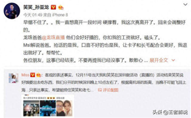 事情发生之后孙亚龙的情绪也有点受不了,甚至一度在微博上表示,自己要暂时退出直播,找一个地方静一静,这段时间都是硬撑着,回来会调整好的,连解说的工作也要退出,出去散散心,后来游戏治愈了孙亚龙,他又重回直播,但是最近,前妻又给他一个暴击,直播间当面给他难堪,说孙亚龙,王德军下个月结婚你要去不去?你把我微信删除了?当然这也有可能是水友恶作剧刷的。