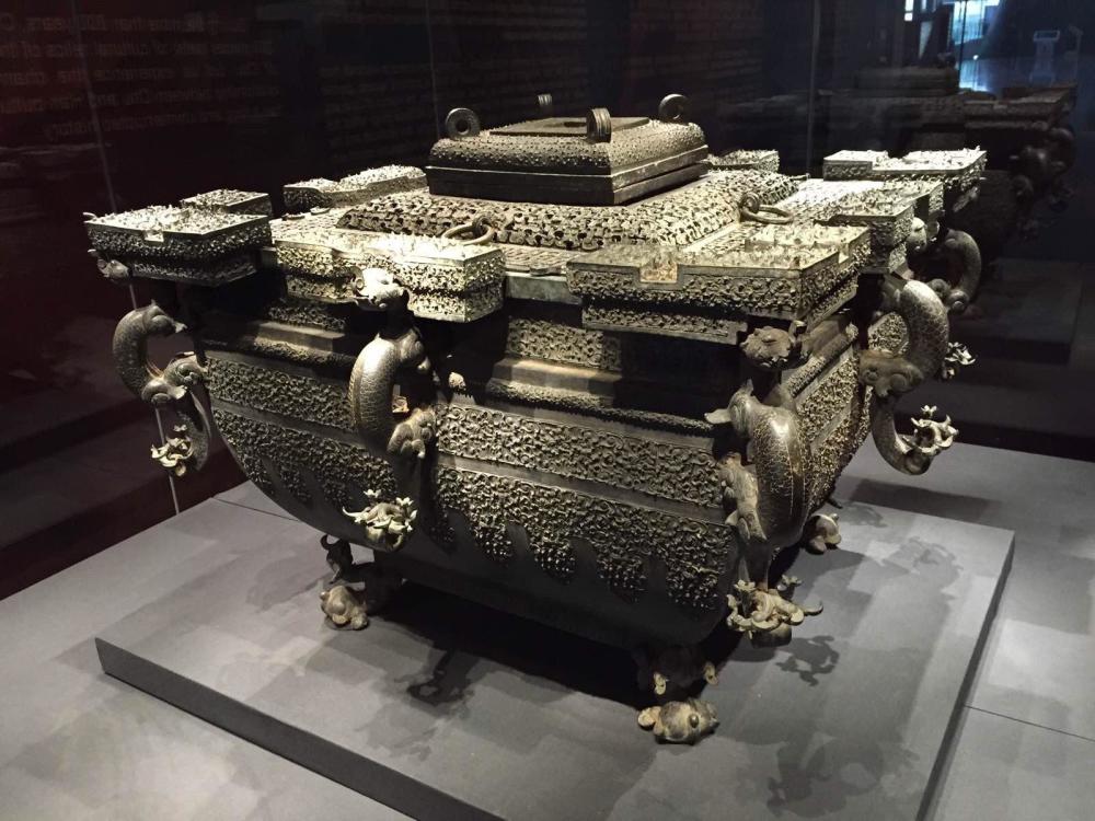 冰鉴是个下边有四个角,四边有环的小盒子。里面有两圈,外面一圈可以放冰块儿,里面放食物和酒水。所以冰鉴相当于古代的‘冰箱’。