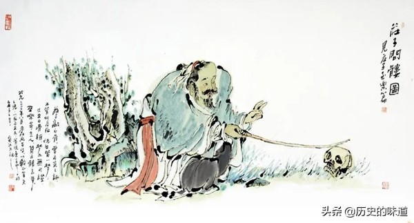 庄子不管三七二十一,拾起骷髅拿去当枕头。半夜里,庄子梦见骷髅对他说:“从你的谈吐来看,好像是个能言善辩的人。不过,你说的那些话,都是活人的忧患,死了就没有这些忧患了。