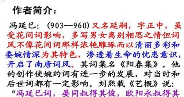 冯延己是在一个新的朝代的启始,在南唐启国时,由于冯延己的专才多学。而且烈祖十分的正视人才,将他请到宫中动作秘书籍郎,与太子天天接游。在必定的水平之上,他也是被称动作太子的教授,他终身也是布满着动摇。固然说冯延己比不上李白那么驰名,然而他本来还不错。