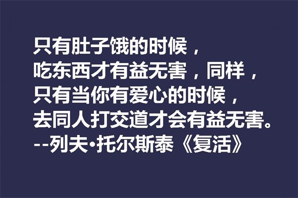 只有肚子饿的时候,吃东西才有益无害,同样,只有当你有爱心的时候,去同人打交道才会有益无害。——列夫·托尔斯泰《复活》
