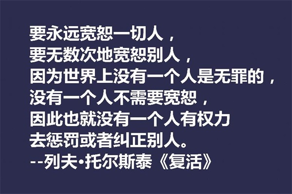 要永远宽恕一切人,要无数次地宽恕别人,因为世界上没有一个人是无罪的,没有一个人不需要宽恕,因此也就没有一个人有权力去惩罚或者纠正别人。——列夫·托尔斯泰《复活》