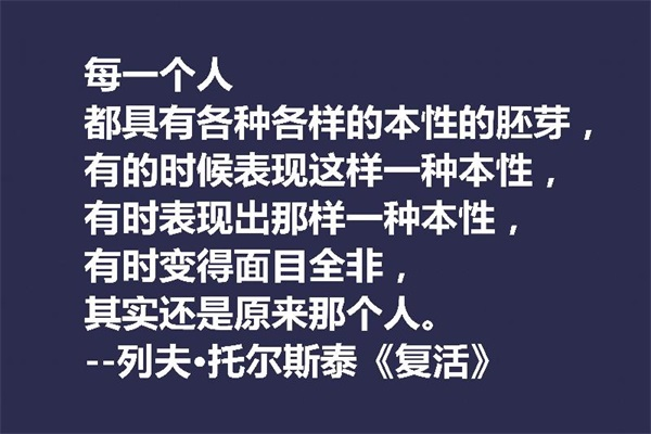 每一个人都具有各种各样的本性的胚芽,有的时候表现这样一种本性,有时表现出那样一种本性,有时变得面目全非,其实还是原来那个人。——列夫·托尔斯泰《复活》