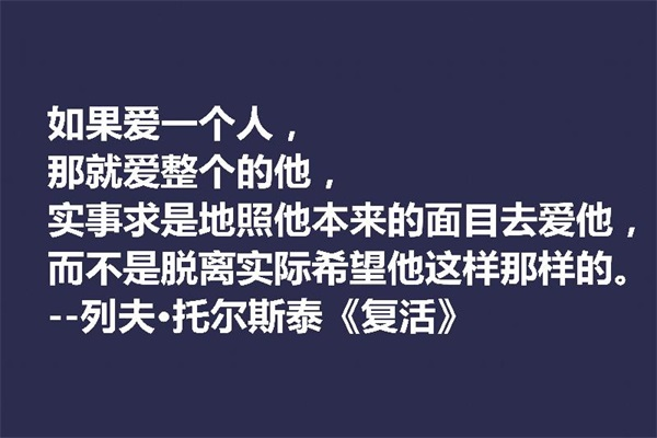 如果爱一个人,那就爱整个的他,实事求是地照他本来的面目去爱他,而不是脱离实际希望他这样那样的。——列夫·托尔斯泰《复活》