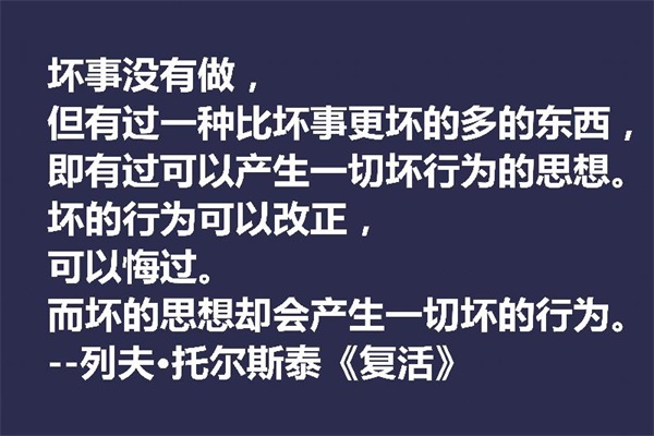 坏事没有做,但有过一种比坏事更坏的多的东西,即有过可以产生一切坏行为的思想。坏的行为可以改正,可以悔过。而坏的思想却会产生一切坏的行为。——列夫·托尔斯泰《复活》
