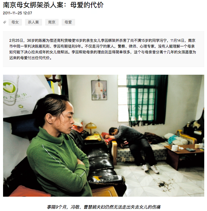 2011年“南京母女绑架杀人案”是 《兔子暴力》背后的真实案件原型: