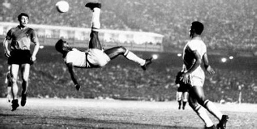 情急之下,他将右脚从球鞋中拔了出来,背对球门侧身起跳,以一个经典的倒挂金钩将已经有些偏过头顶的皮球射入球门!世界杯史上的首个倒勾进球就这样产生了。莱昂尼达斯在该场比赛中一人包办四球,帮助巴西队在开场0比5落后的情况下以6比5的比分不可思议地逆转胜波兰。