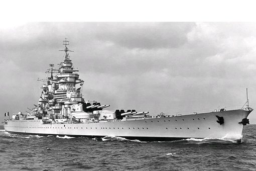 俾斯麦级战列舰是纳粹德国建成的最大的主力舰,超越了英国皇家海军旗舰,战列巡洋舰胡德号,成为当时世界上吨位最高战舰。标准排水量35000吨,舰长250米,宽38米,吃水10米,四座双联装380毫米主炮,涡轮-电力装置。最大航速30节,最大续航力8000海里/19节。