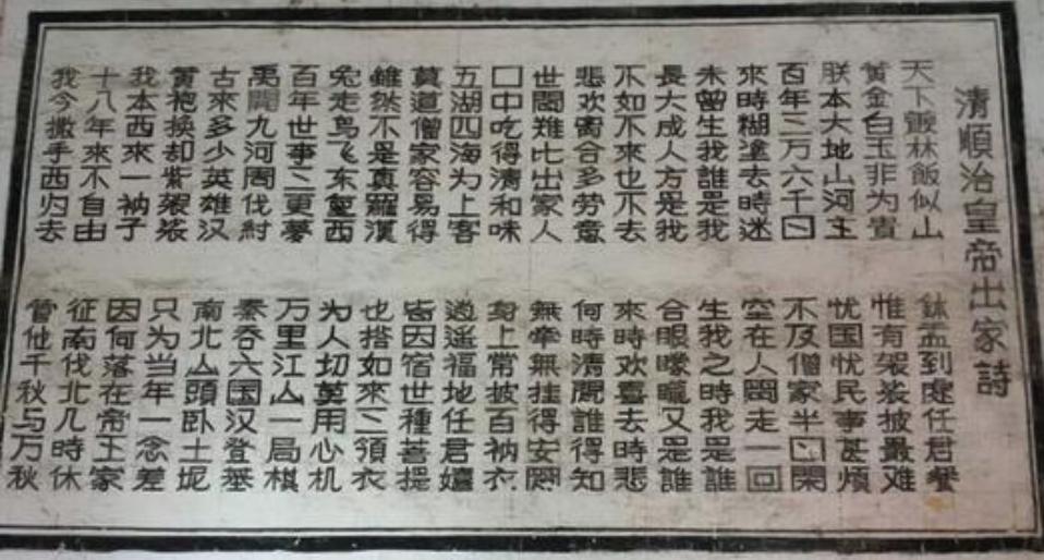 小说中还记载,康熙帝曾奉太皇太后之命,假借出巡到五台山,实为寻找乃父福临。董鄂妃生前最好佛法,顺治如果真的遁入僧门,倒也符合一位痴情皇帝对爱妃的留恋。