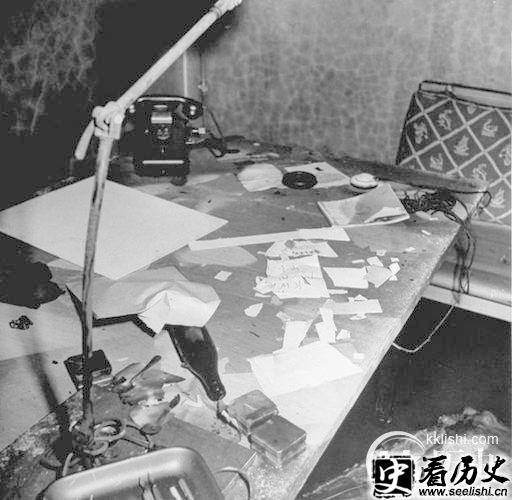 盟军攻陷柏林后,威廉范迪维尔特是第一个获准进入地下室拍照的西方摄影师。范迪维尔特说:“当时只有一根蜡烛照明,这些照片都是在黑暗中拍摄的。”图为希特勒帝国总理府的地下指挥中心,他在这里自杀。