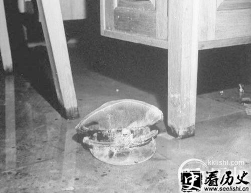 一顶镶有骷髅头徽章的军帽已经发霉,这张照片系首次公布。