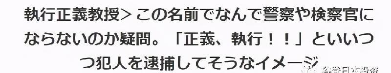 除此之外,日本人的姓氏和名字连起来似乎在中文字面释义中也显得十分怪异,比如这位叫作执行正义的教授,