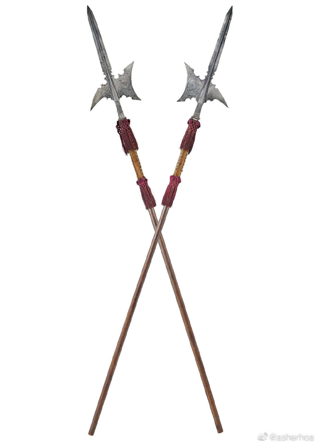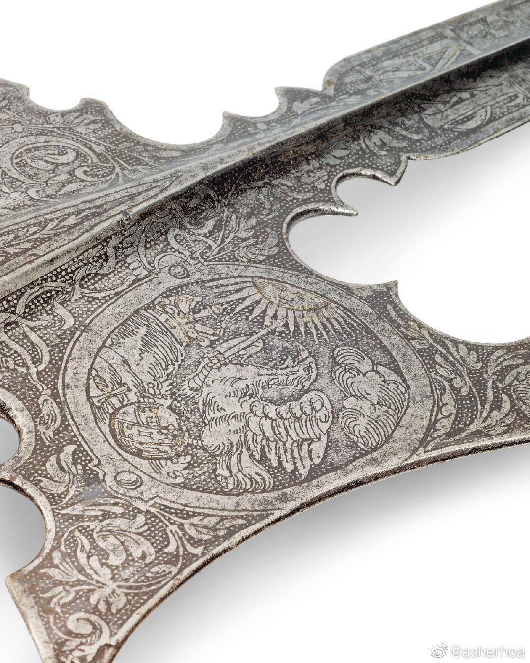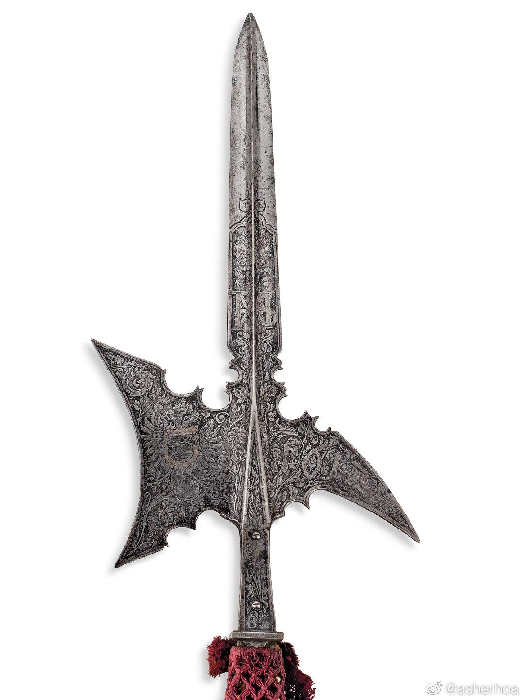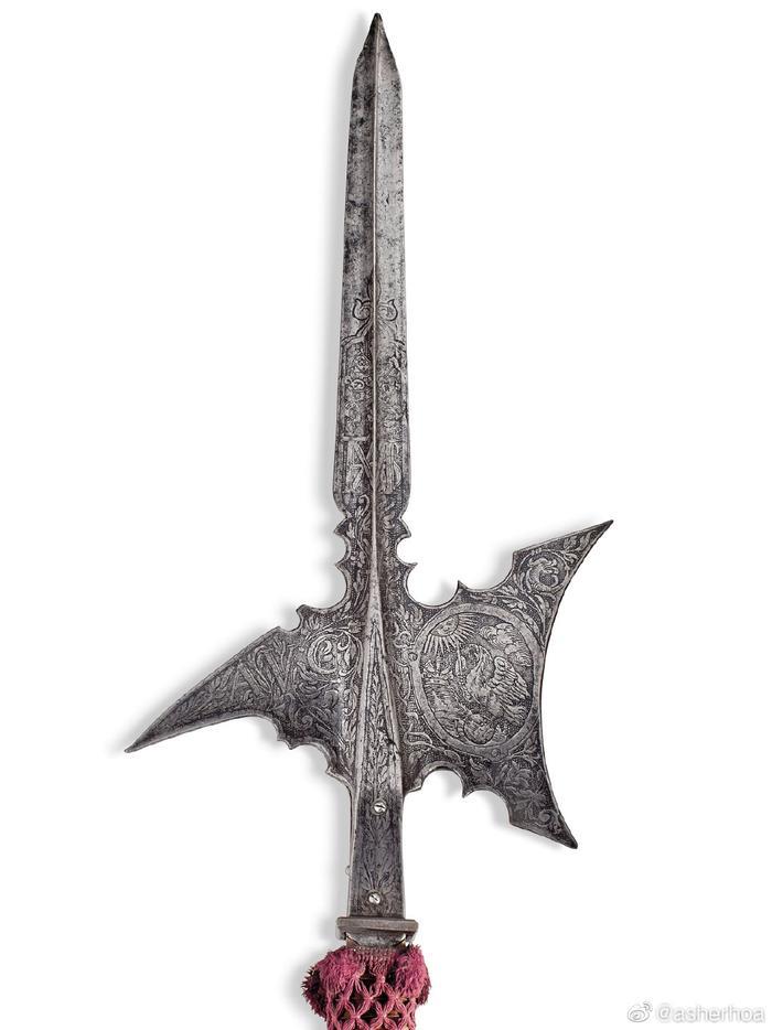 神圣罗马帝国皇帝、匈牙利国王、波西米亚国王马蒂亚斯(Matthias,1557年2月14日—1619年3月20日)皇家卫队所用的一对长戟(制作于1612年左右)即将亮相7月4日佳士得伦敦拍卖会,估价8000-12000英镑。不知有没有国内兵器爱好者出手?@幻想狂劉先生