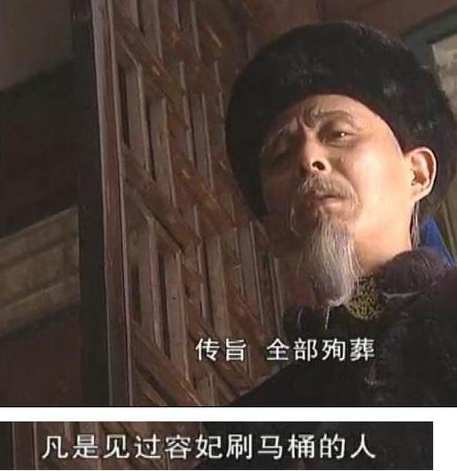 然而容妃的死打破了局面。猝死,来得突然,康熙万万没有想到。容妃的死亡让康熙的负罪感终于爆发,不可收拾。他在心底里每天悄悄牵挂的容妃再也不会开口说话了,当然,也不会再提老祖宗的懿旨了。康熙只是贬容妃为奴,但直到容妃死去,才知容妃干的活是刷马桶,死在马桶堆里,污秽缠身。这群为非作歹的奴才,竟然这样的欺凌容妃,如果不是他们的百般欺凌蹂躏,恐怕容妃也不至于这么快死去。恼怒、忿恨、耻辱感顿时占满心头。该杀!何况,这群奴才留着,以后势必还要到处散播容妃刷马桶的情景,不杀之,谈何尊严。朕正要弥补容妃,加封容妃,怎么能允许有人还风言风语,朕的容妃绝不许谁再玷污。容妃刷马桶的事只当是从没在这世上发生过。所有见过容妃刷马桶的人一概不留!