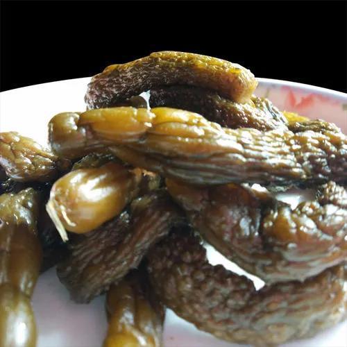 桂馨斋在选料时,也是非常严格的,做这道酱菜的材料,必须是北京南郊小红门生产的“二道眉的芥菜头”,首先要把菜洗得干干净净,再经过“晾”“晒”“腌制”,要反复下料,再经过“蒸”“煮”“晾”“晒”“装坛”“发酵”反复9次,制出的产品才是合格的产品。