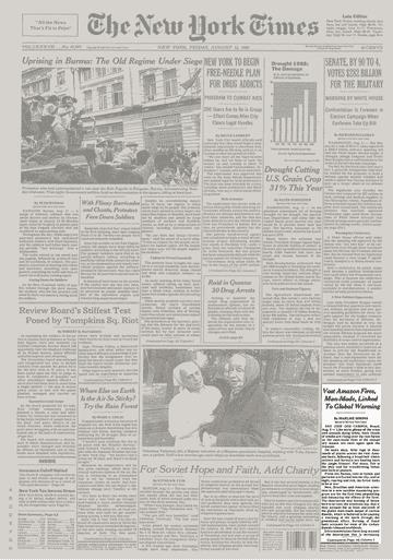 据巴西著名遥感建模专家内格雷伊洛斯(Gustavo Hees de Negreiros)等的研究成果(1996年澳大利亚洛恩第13届“火与森林气象学会议”书面发言)显示,1987年,巴西亚马逊森林全年出现火点170500个,大约2050万公顷亚马逊森林碑烧毁。署名马里斯.西蒙斯(Marlise Simons)、发表于1988年8月12日《纽约时报》的专题文章指出,美国遥感卫星在1987年首次对亚马逊森林火灾问题进行了卫星遥感监测,发现当年亚马逊森林巴西部分过火面积达7.7万平方英里(1平方公里等于0.3861平方英里),面积相当于美国纽约州的1.5倍,其中至少3万平方英里以上是以前从未开垦过的原始森林,仅7-10月在帕拉(Para)、。朗多尼亚、马托格罗索(Matto Grosso)、阿克雷(Acre)四个州,就有1.93万平方英里森林过火。