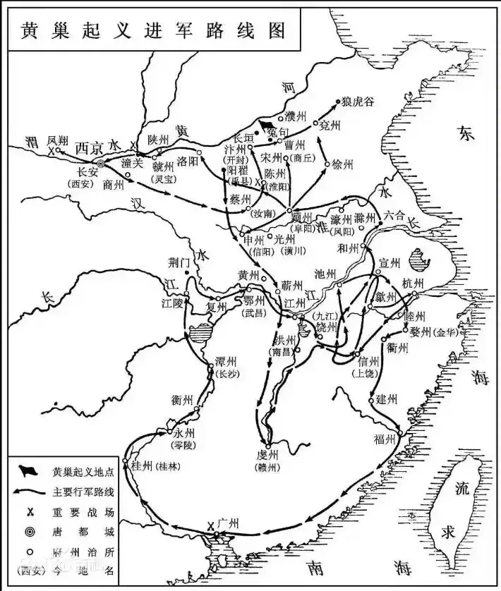 黄巢,曹州冤句人。《新唐书.黄巢传》载:“善击剑骑射,稍通书记,辩给,喜养亡命。”