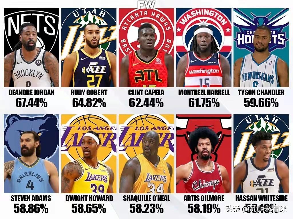 NBA是一个竞技联赛,你想要获得比赛的胜利那么你就需要得分。要想做到得分,首先就必须要出手投篮,但是并不是每一次的投篮都能换来得分,所以那么命中率高的球员就会更加备受喜爱,因为他们可以更有效率的得分。以往我们已经统计了NBA历史上三分球命中率最高的十大球员NBA历史上场均三分命中率最高的十大球员:科尔第一,库里才第七和罚球命中率最高的十大球员NBA历史罚球命中率前十的球员:库里当之无愧历史第一罚球手,那么NBA历史上投篮命中率最高的球员都是哪些人呢?最近外媒FW就统计了NBA历史上投篮命中率最高的十名球员,下面我们就一起来看看: