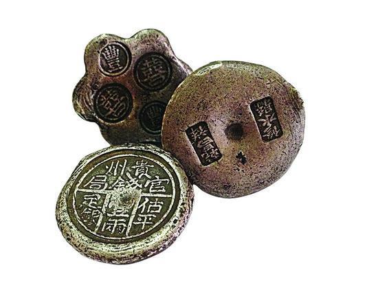 当代人意识中,明清流通货币中的银子,统统指的是元宝,都是两头翘的马鞍形银锭。其实并非如此,就拿清代来说,流通的主流银锭,按其形状与重量分类,共有四种。第一为两头翘马鞍形重50两的大锭,昵称宝银,亦称大元宝。第二种是圆锤形或者两头翘马鞍形中锭,重约10两或15两,昵称小元宝。小锞或锞子属第三种,大多形似白面馒头,亦有其他形状,重一二两到三五两不等,当年统称为小锭(图3)。不足一两的散碎银子,则昵称滴珠、福珠,排在第四。美其名曰滴珠、福珠的散碎银子,其实并非“珠”,散碎而已,形状重量各异。