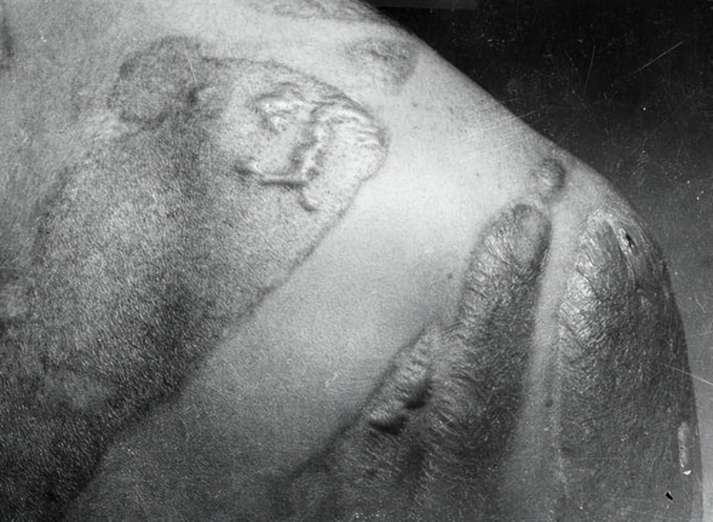 皮肤直接暴露在原子弹闪光下留下的烧伤 美国国家档案馆图