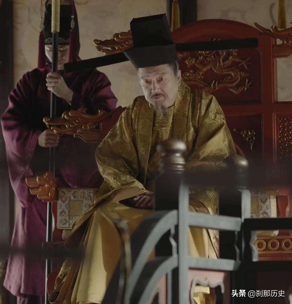 被臣子逼迫的老皇帝。老皇帝出场,就被臣子们揭开伤疤,说他三个亲生儿子都夭折了,现在年纪也大了,为了江山社稷,还是赶紧从旁支过继一个来。