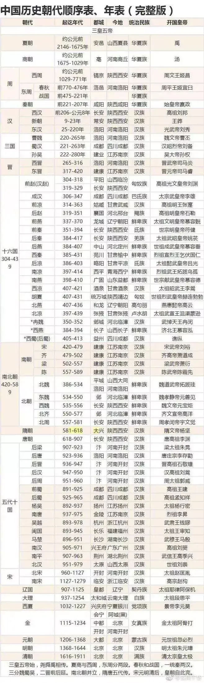历史朝代顺序