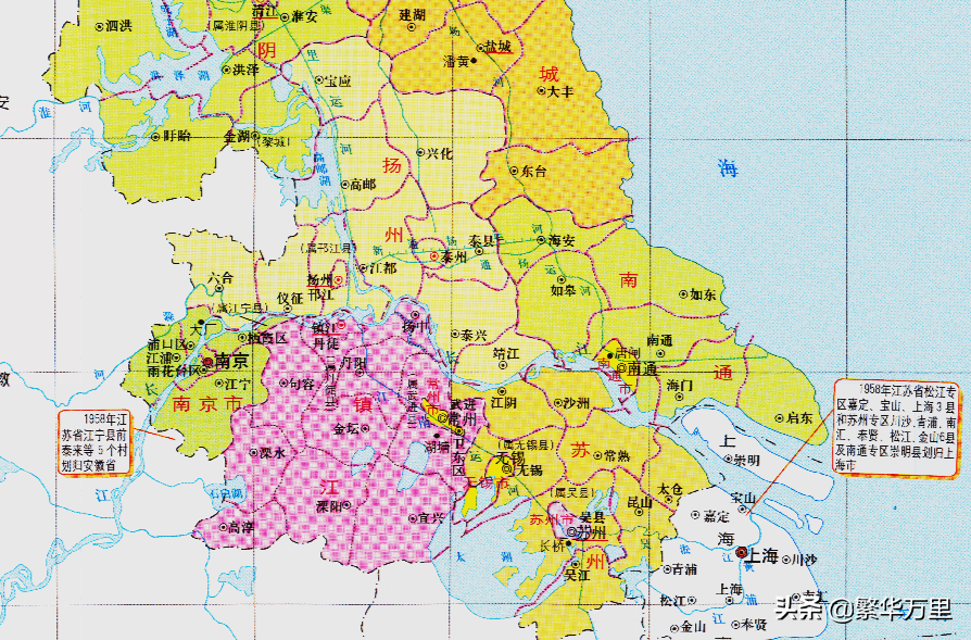 苏南和苏北两大行署区合并,南京市也重新成为了江苏省的省会。