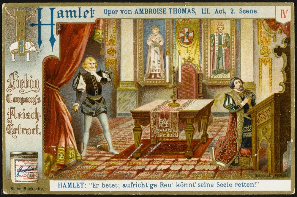 在他的母亲知情的状况之下,他的叔叔趁老国王在花园里睡着时将剧毒的蛇液滴入他父王的耳朵里。