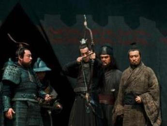 吕布令人在辕门竖起一只戟,和众人打赌,戟上有小孔,如果一箭穿孔,就请立即退兵,若射不中,那让他们决一死战。