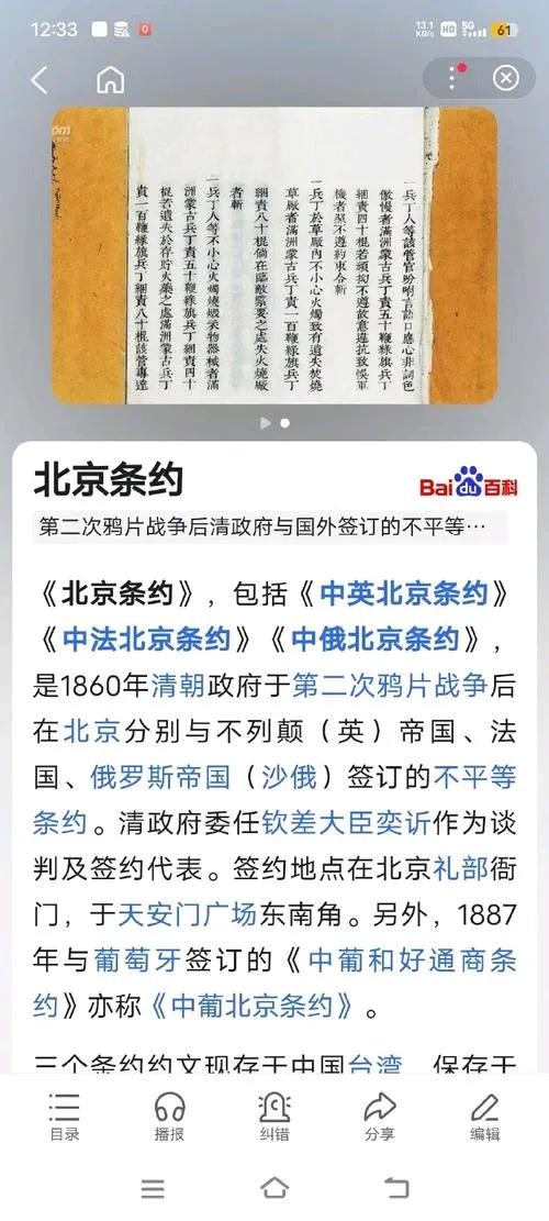 北京条约是清朝与列强之间的重要不平等条约之一,签订于1860年,标志着第二次鸦片战争的结束。该条约不仅改变了中国的领土和外交关系,也深刻影响了清朝的衰落和中国近代史的发展。本文将从历史背景、条约内容、签订过程及其影响等方面,对北京条约进行全面分析。