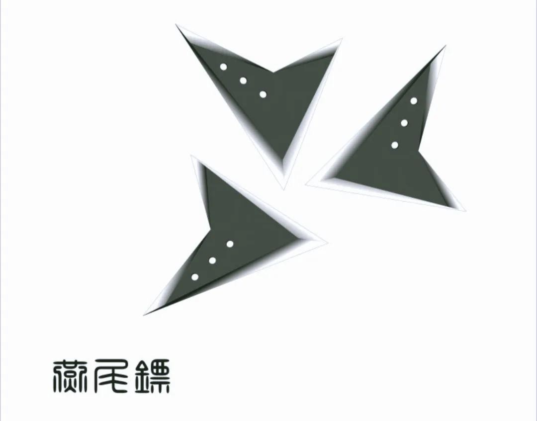 燕尾镖是一种形状独特的暗器,它类似于一个带有分叉的镖。燕尾镖在飞行过程中可以产生稳定的旋转,从而提高其飞行稳定性和命中精度。这种暗器在古代常常被用于暗杀和远程攻击。