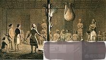 船员在登岛后,亲眼看到了草房中的人骨,有些房中甚至还炖着人的脖颈。加勒比人通常会将俘虏的小男孩阉割,以便使其长的胖一些,然后才大快朵颐。