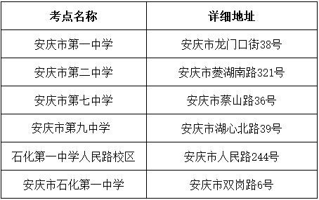市区物理方向考点为市第一中学、安师大附中、市第十二中学、市田家炳实验中学、市第三中学和安师大附外城东校区,考场数分别为52、29、40、36、21和31;市区历史方向考点为市中江中学、市第二中学、市城南实验中学和安师大附外,考场数分别为24、30、27和46。