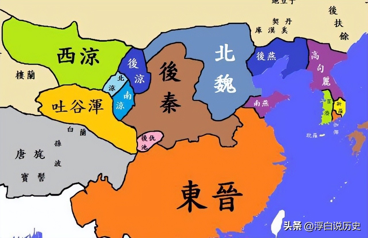 公元386年,镇守西域的吕光听闻苻坚败亡,遂在凉州宣布自立,史称后凉。同年惨遭灭国投降的鲜卑族拓跋氏也在内蒙地区建立了魏国,史称北魏。
