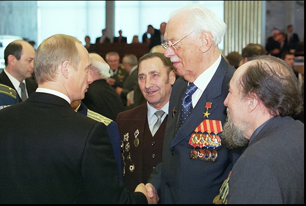 2002年,词作者 谢尔盖·米哈尔科夫接受普京总统接见