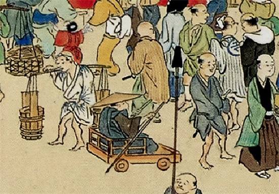在日本早期的一些绘画作品中可以看到木制轮椅的样子,看起来就像一个可供人乘坐的推车,车轮也很小。