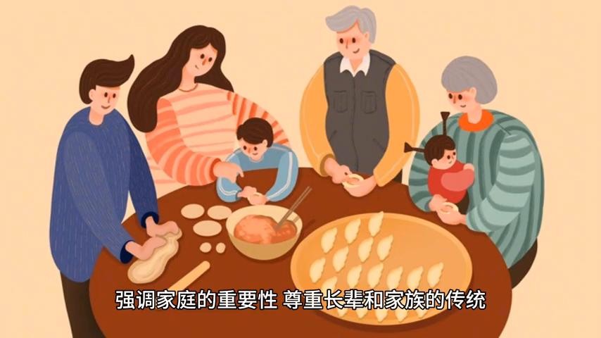 ·社会组织和家庭观念:中国文化注重家庭观念和亲密关系,强调家庭的重要性,尊重长辈和家族的传统。而在西方文化中,个人的独立和个人选择的自由更被重视,家庭结构相对较为灵活。社会组织更加强调社会公平和平等。