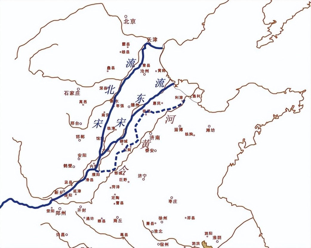 1048年(北宋庆历8年),黄河在澶州商胡埽(今濮阳东)决口,河道重新回到天津附近入海,史书上称为“北流”。