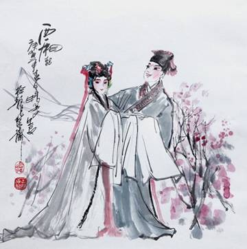 <<西厢记>>,最早起源于唐代元稹的传奇小说《莺莺传》,叙述书生张珙与同时寓居在普救寺的已故相国之女崔莺莺相爱,在婢女红娘的帮助下,两人在西厢约会,莺莺终于以身相许。
