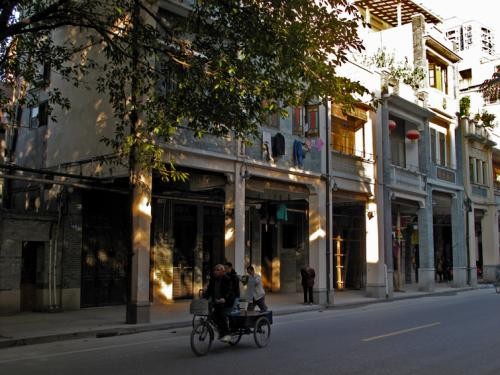 该形式骑楼延续了我国南方传统民居的特点,底层沿街挑出,长廊跨越人行道沿街布置,楼层正面墙上并排开着两至三扇窗户,立面基本无装饰。这种骑楼仅在南华路、同福路、万福路、德政路、起义路等还有零星保存。